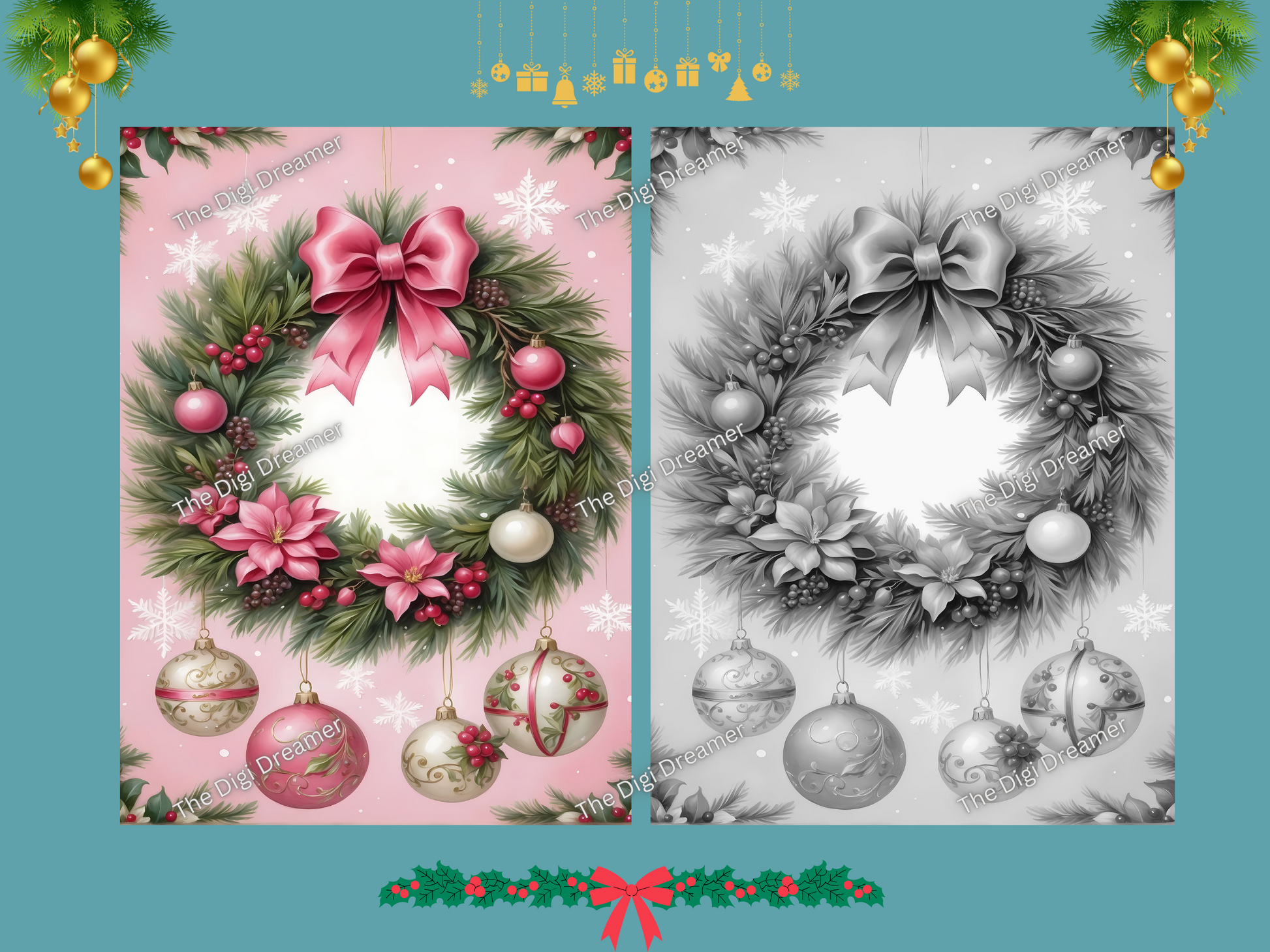 Festive Christmas Coloring Greeting Cards Set 1-Pack of 5, Printable Greeting Cards, Digital Download
